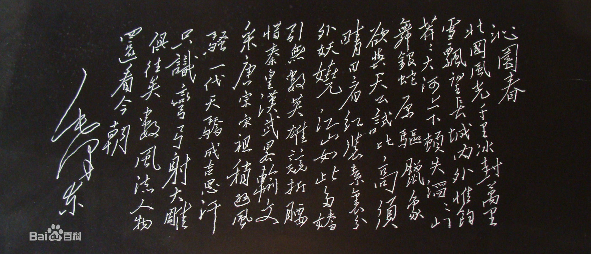 历来诗词咏雪的很多。“雪”,是富有诗意的自然景物,不少诗人对“雪”都成功地作了新的发掘。毛泽东这首词因“初到陕北看见大雪时”而起兴。1958年12月21日,毛泽东又作过批注:“雪:反封建主义,批判二千年封建主义的一个反动侧面"。