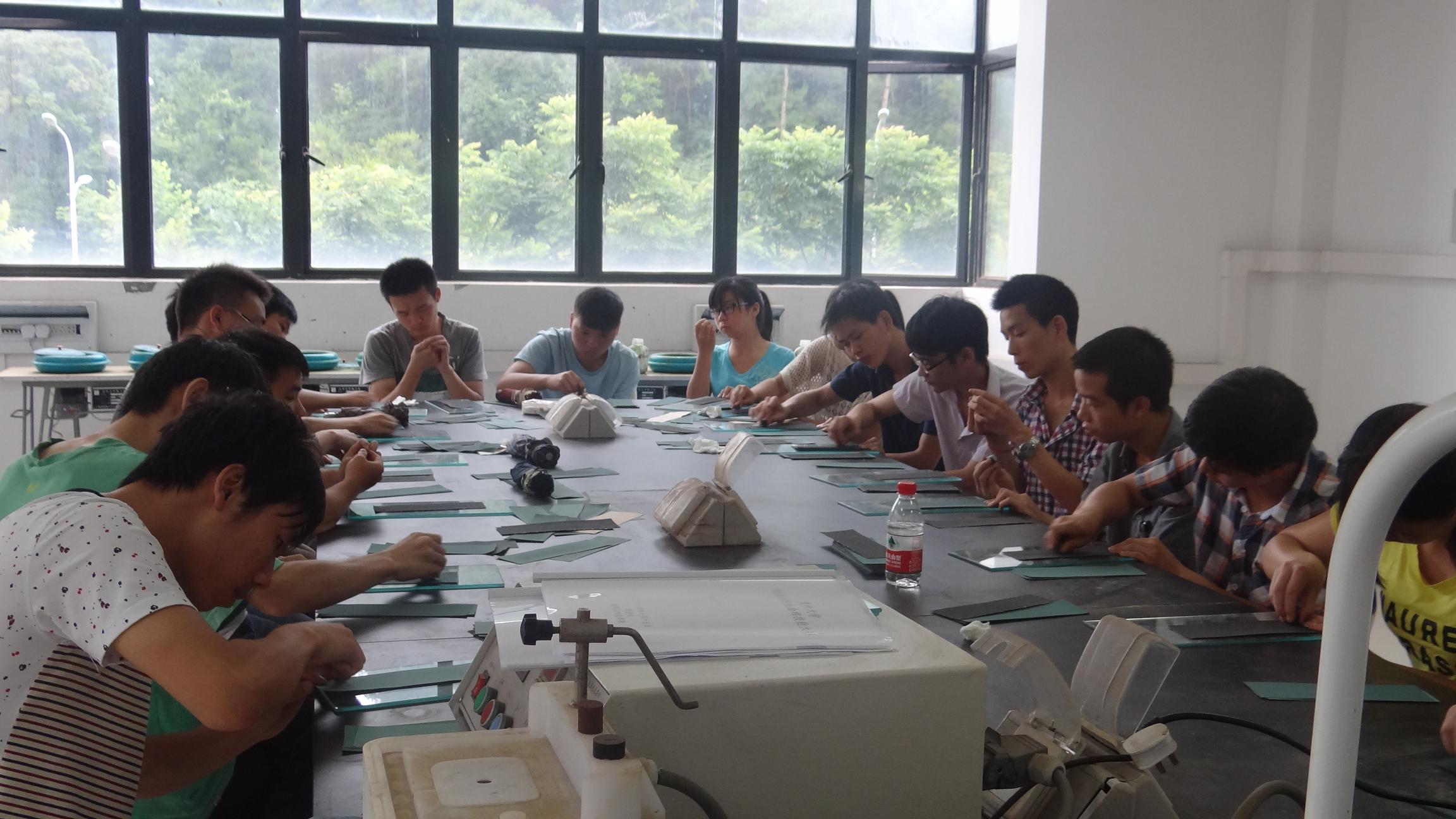 比赛过程中,动作快的同学仅仅用了15分钟就完成粗磨、细磨两道工序。经过抛光、浸蚀和显微镜观察,同学们很多又继续返回重新抛光,浸蚀,以争取更高的样品质量。
