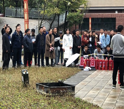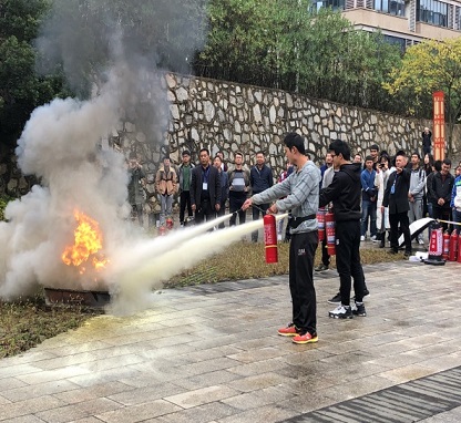 活动现场,校保卫处老师通过讲解、操作等方式讲述了干粉灭火器的正确使用方法,然后现场随机每班选派3名同学进行实操训练。通过现场实践活动增强了公司师生消防安全知识,提高了师生处理实验室紧急状况的能力,具有较好的示范作用,