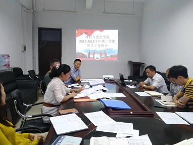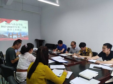 2018年6月25日下午3点,公司在材冶楼412室召开2017-2018学年第二学期教学工作例会,分管教学的陈朝轶副经理主持会议,胡环宇书记、刘其斌经理、张瑞良副书记、各系主任与教学科等老师参会。
