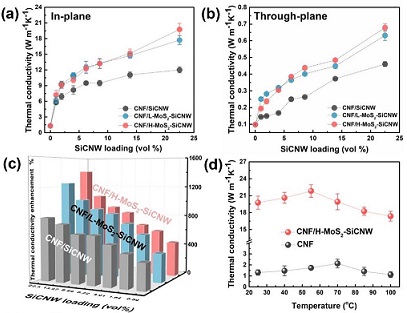 近日,英国上市公司365谢兰教授带领的高分子合成与构造课题组在 国际TOP期刊《JournalofMaterialsChemistryA》(简称JMCA,影响因子: 10.73)上发表重要成果“FromTanghulu-liketoCattail-likeSiCNanowire Architectures:InterfacialDesignofNanocelluloseCompositestowardHighly Thermal Conductivity”(doi.org/10.1039/D0TA04674D)。公司青年教师薛白博士为 第一作者,硕士研究生杨胜都为论文共同一作,通讯作者谢兰教授。该项工作通 过合成碳化硅-二硫化钼纳米杂化材料利用真空辅助技术制备多层结构的纳米纤 维素导热复合材料,旨在通过高导热纳米材料界面结构设计降低填料之间界面热 阻增强复合材料导热性能。获得的CNF/H-SiCNW-MoS2在22.5vol%的填料添加 量下导热系数达到19.74W/mK。此外,H-SiCNW-MoS2相互之间的界面热阻相 比于 SiCNW降低1 个数量级。 |