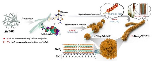 图1碳化硅/二硫化钼纳米杂化材料结构设计与制备过程 |
