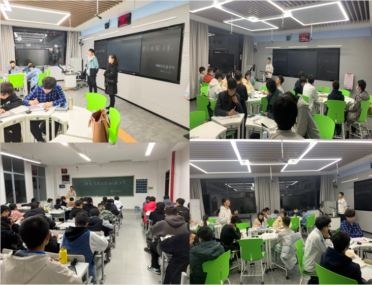 分享会上,优秀学长为同学们介绍了本科与研究生阶段的区别,鼓励同学们继续考研深造,在专业课程的学习方法以及课后如何巩固、实践所学的知识进行了自己的经验分享,并与20、21级同学进行问答互动。