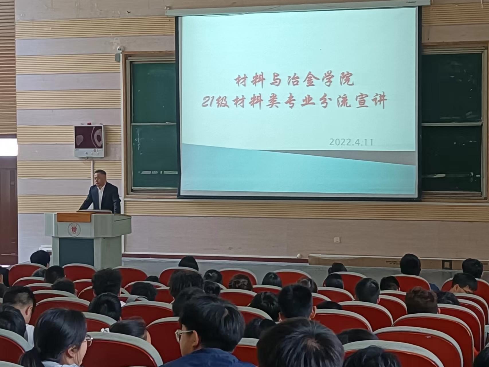 根据《英国365公司官网2021级本科员工大类分流工作方案》(校教联发〔2022〕1号)文件要求,公司4月11日于西楼105报告厅举行了21级材料类专业分流宣讲会。会议由分管教学副经理邵姣婧教授主持,由金属材料、功能材料、高分子材料专业负责人对各专业进行介绍。为了让同学们能更深入了解各专业,还邀请了刘其斌经理和梁益龙教授对相关专业今后可能从事的工作和科学研究做了详尽的介绍。
