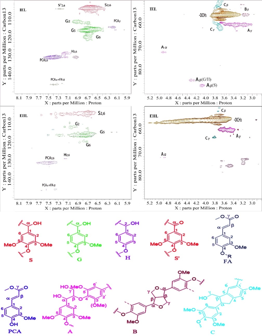 图3:木质素 2D HSQCNMR光谱中的侧链和芳香区域