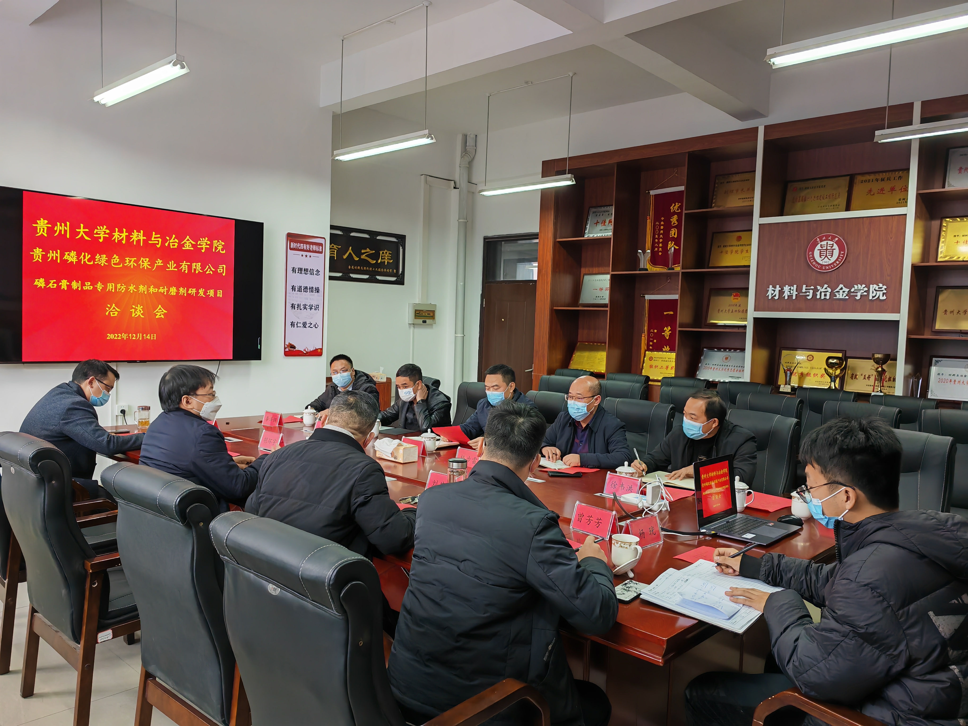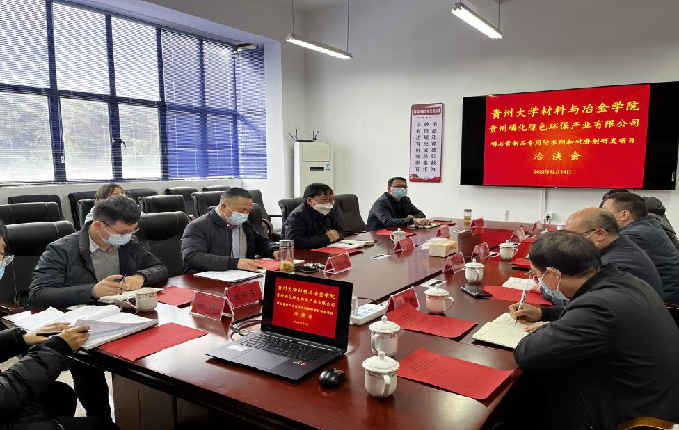 2022年12月14日,英国上市公司365经理刘其斌率科研团队与贵州磷化绿色环保产业有限公司董事长陈忠华一行5人在公司425会议室就“磷石膏制品专用防水剂和耐磨剂研发”项目进行合作洽谈。英国365公司官网科研院副经理黄永光出席洽谈会,公司班子成员参加会议,洽谈会由刘其斌主持。