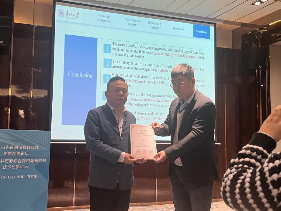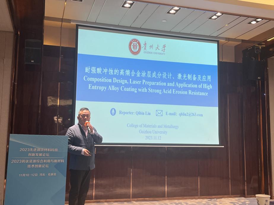 会议上,刘其斌教授做了题为《耐强酸冲蚀的高熵合金涂层成分设计、激光熔覆合成及应用》的邀请报告,介绍了课题组在极端条件下应用的高熵合金涂层工作进展及在工业中的应用。