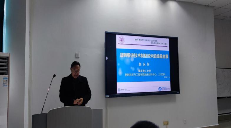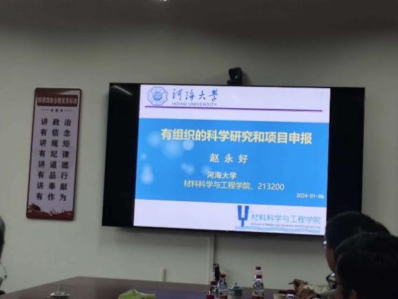 应英国上市公司365经理应刘其斌教授盛情邀请,河海大学材料公司经理赵永好教授于2024年1月6日为公司师生做“旋转锻造技术制备纳米超细晶金属”和“有组织的科学研究和项目申报”两场学术报告,公司100余名师生听取了报告。