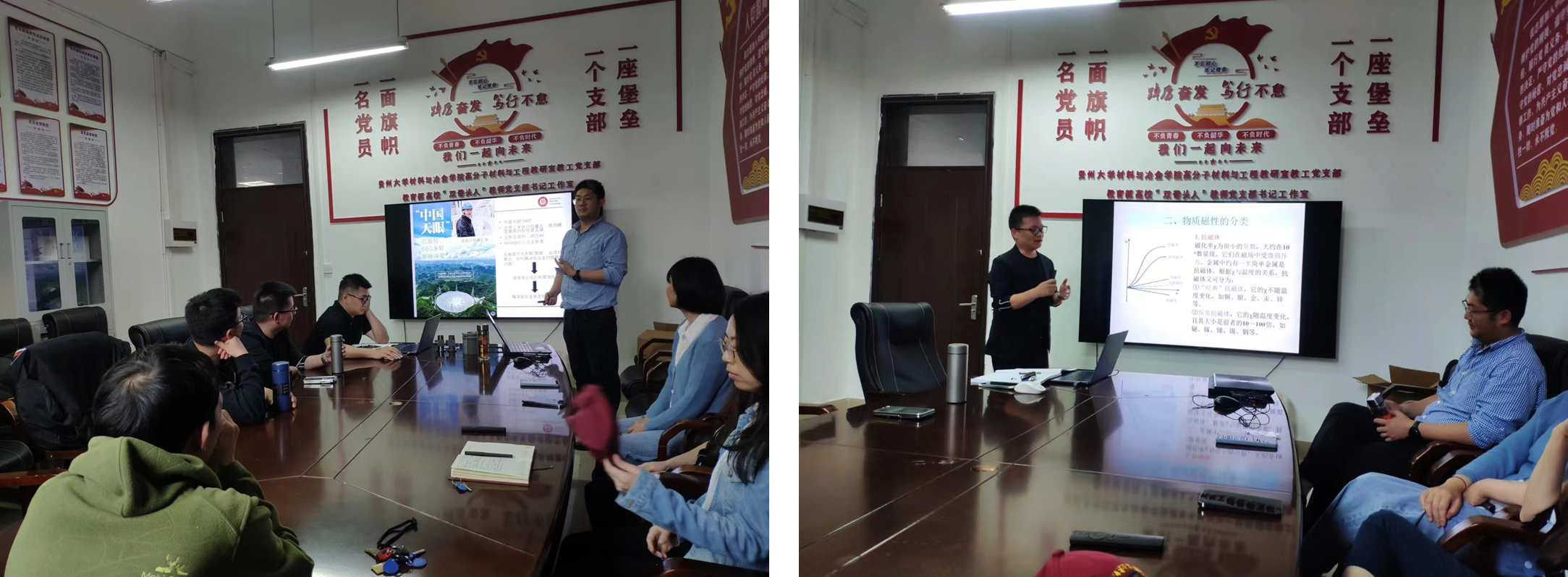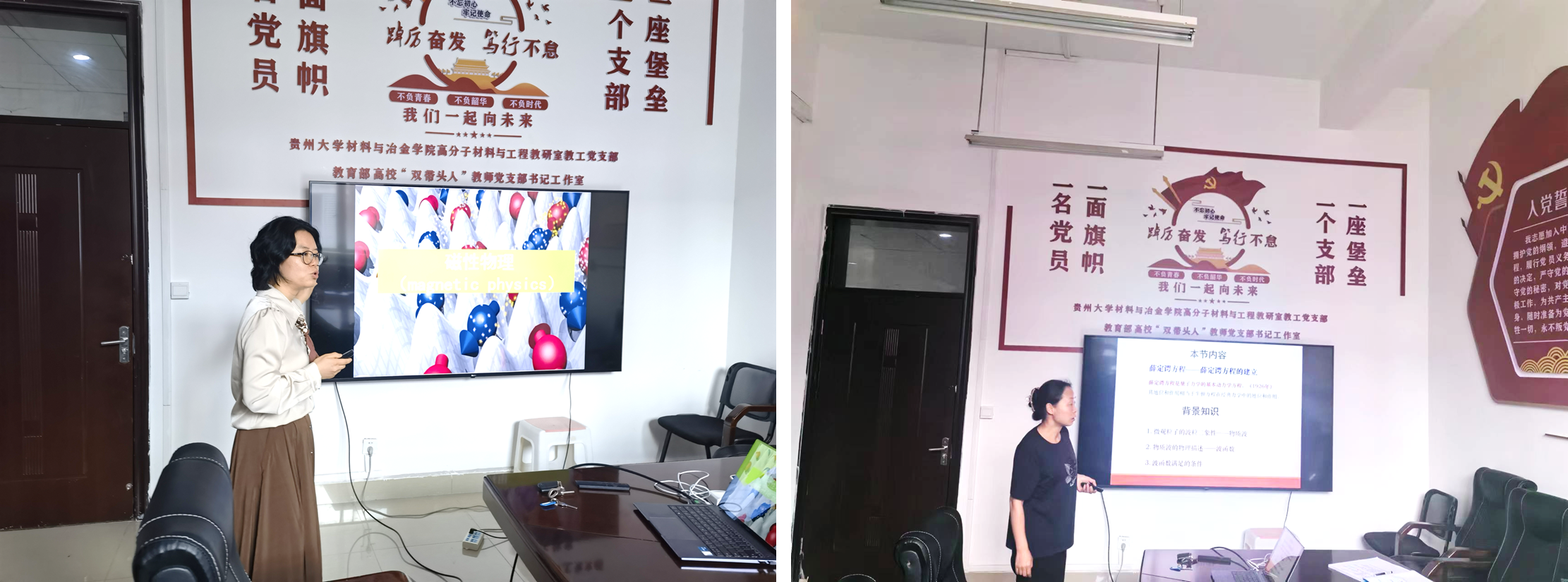 活动中,邵姣婧老师就专业必修课《材料物理学》(双语)进行讲授,结合行业现实需求场景,增强员工专业责任感和使命感,关注国家战略和现实需求。通过自身科研案例,激发员工学习本专业的兴趣和探索钻研精神,以磁学问题相关的名人传记和历史故事,进一步培养员工家国情怀和优秀历史文化传承。教学经验丰富的教师徐鹏、李龙、周芳和朱涛以及新进青年教师许晶、周鹏飞和郭亚雄也对下学期授课的内容进行了生动的现场模拟教学。