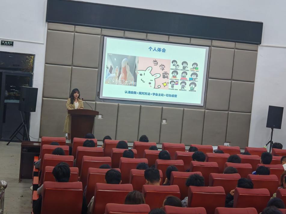其次,罗喜匀学姐结合自身经历,向同学们介绍了自己学习上咸鱼翻身的真实经历。她对同学们提出明确目标、尽早规划,逃离舒适圈、相信一切皆有可能的忠告,并鼓励同学们保持体育锻炼、积极向上、不断进取。