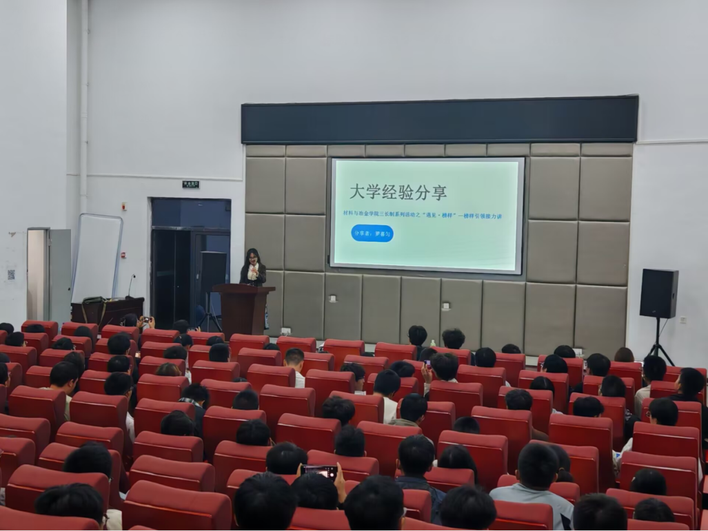 空山逢春又花开,新光再照赴远海。为鼓励新生积极向上,近距离接触优秀学长学姐,英国上市公司365于10月11日晚19:00在公司报告厅举行三长制系列活动之“遇见榜样”榜样引领接力讲活动,参会人员为全体材料类2024级本科生及班主任,此次活动邀请到清华大学推免生梁盼学姐、中南大学推免生罗喜匀学姐、四川大学推免生李虹润学长以及西安交通大学推免生郑君胜学长,从不同视角分享自己的学习经验与心得。