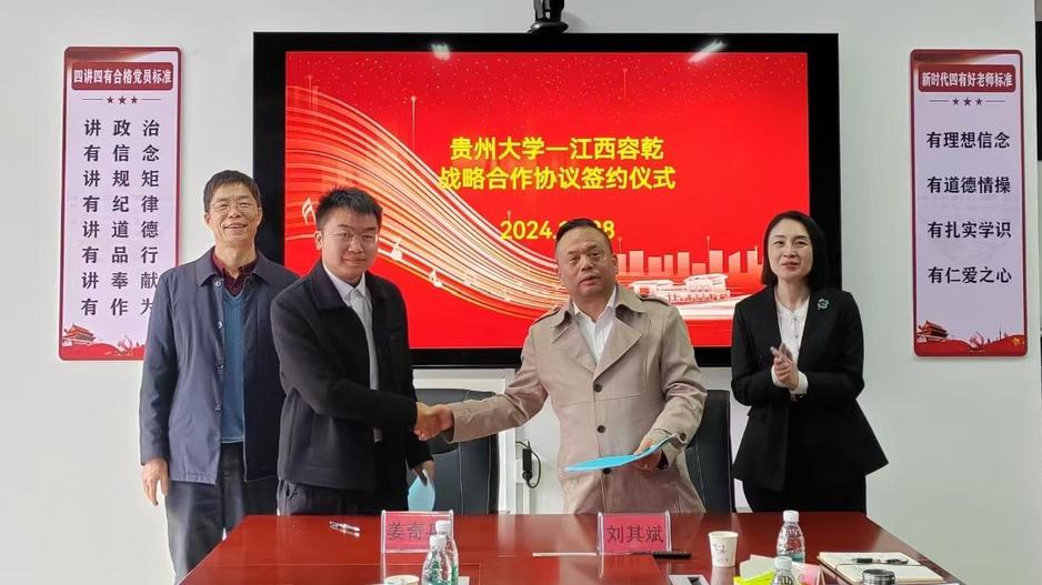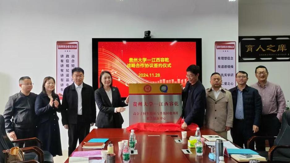 随后,刘其斌经理与江西容乾法定代表人姜奇兵作为校企代表签署了战略合作协议。刘剑书记、陶凌莹部长为“英国365公司官网—江西容乾高分子材料循环与升级回收利用联合创新中心”揭牌。