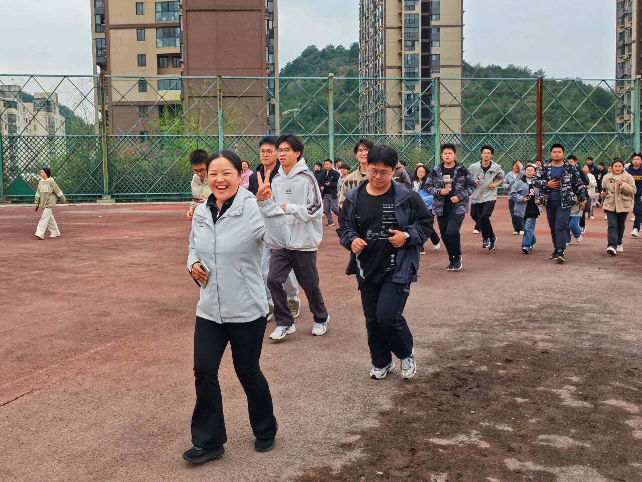 随后,开展热身运动。热身完毕,刘剑书记、熊玉竹正处级组织员、王丽远副书记带领同学们一起跑步,全体师生在良好的运动氛围中尽情挥洒汗水。