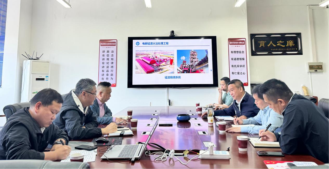 随后,王海峰从公司锰系团队的发展历程出发,深入分析了当前国内水泥窑协同处理锰渣资源化的技术现状、核心关键技术、存在的瓶颈问题及未来应用前景。同时,针对铜仁市提出的退役水泥窑资源化利用方案,王教授对现有装备情况、所需补充的工艺环节及设备进行系统梳理,提出了初步的技术对接构想。双方围绕锰渣处理装备优化、工艺融合等内容进行了深入交流。