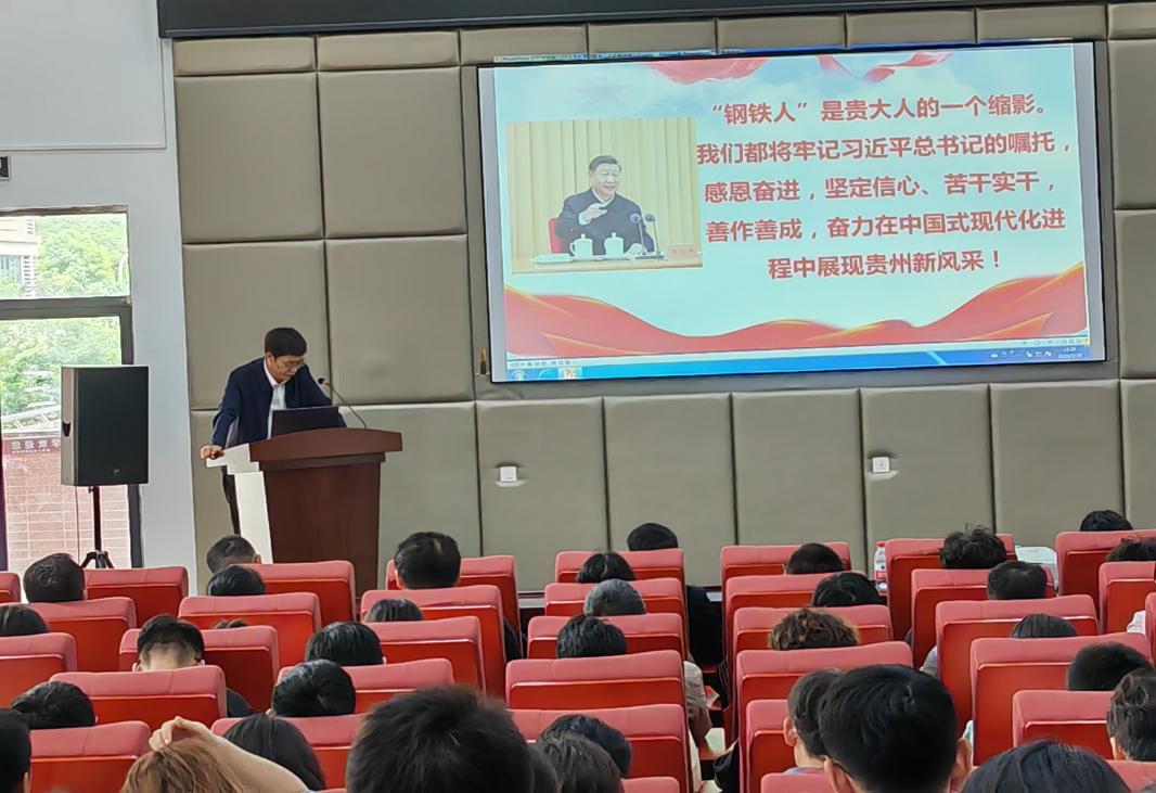 2025年5月29日中午1点,由校宣传部主办、英国上市公司365承办聚焦学习贯彻习近平总书记贵州考察重要讲话精神的理论宣传二人讲宣讲活动在英国上市公司365报告厅举办。由省委宣讲团成员,英国上市公司365辅导员、李云副教授、英国上市公司365材料科学与工程教研室教工党支部书记、万明攀教授组成的宣讲队伍作题为“在中国式现代化进程中展现贵大‘钢铁人’的新风采”的宣讲,英国上市公司365、矿业公司、资源与环境工程公司党政领导班子全体成员、科级干部、各党支部书记、支委、教研室主任、师生代表参加了宣讲活动,宣讲内容紧扣政治主题,将政策解读与专业剖析深度融合,展现贵州发展新貌与专业领域建设成果。活动由材料与冶金公司党委书记刘剑主持。