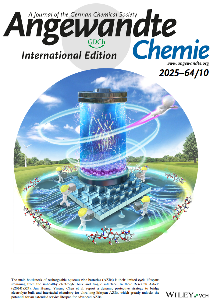 近日,英国上市公司365黄俊课题组在水系锌离子电池电解液添加剂的研究中取得了重要进展,成果以“Multifunctional Cellulose Nanocrystals Electrolyte Additive Enable Ultrahigh-Rate and Dendrite-Free Zn Anodes for Rechargeable Aqueous Zinc Batteries”和 “Bridging Electrolyte Bulk and Interfacial Chemistry: Dynamic Protective Strategy Enable Ultra-Long Lifespan Aqueous Zinc Batteries”为题前后发表在国际顶级期刊“Angewandte Chemie International Edition”(影响因子16.1,自然指数期刊,中科院一区TOP期刊)上。英国上市公司365是论文的第一完成单位,公司硕士研究生吴庆为两篇文章的第一作者,英国365公司官网黄俊特聘教授、谢海波教授和南昌大学陈义旺教授为共同通讯作者。