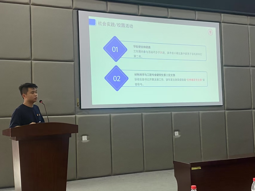 冶金工程研究生第一党支部的娄亮同志,发表两篇SCI论文与一项专利,获国家奖学金、特等奖学金,即将赴重庆大学深造攻读博士学位,他带来了研究生科研经验分享。