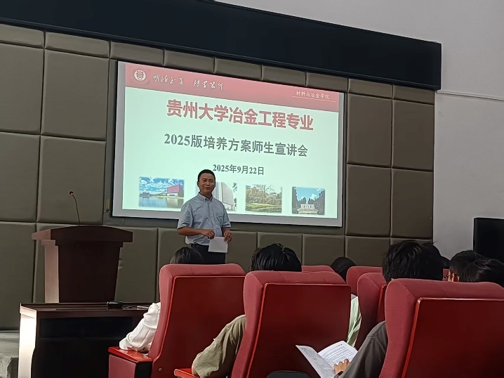 冶金工程教研室主任兰苑培首先为2025级新生详细介绍了专业2025版培养方案的培养目标和毕业要求,对课程体系和选课等进行了讲解;从“新情况、新挑战、新机遇、新未来”四个方面介绍了2025级本科新生的情况、新时代本科人才培养的挑战、冶金全体教师为强化本科生培养开展的改革与成效、对2025级“以研促学”人才培养的计划与展望等。